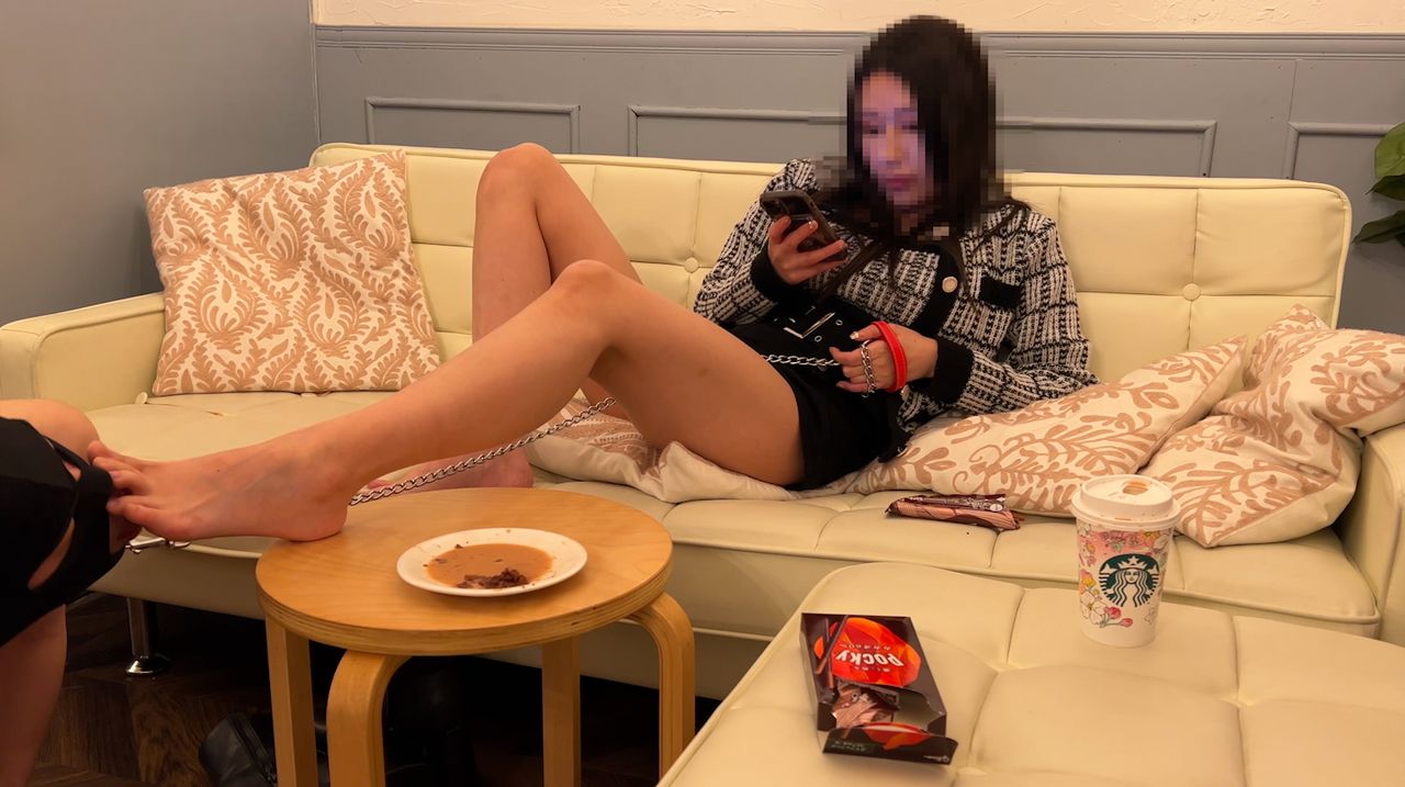 M男に靴裏舐め掃除をさせながらパシリで買ってこさせたポッキーを食べて寛いでいる姿は、元店員様的にはルンバに床掃除をさせながらそれをソファーで眺めているような感覚なんだろうと思いました。